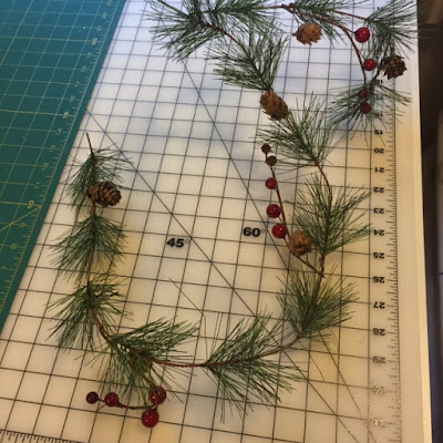 Wire based garland sections with holly, pinecones and evergreen came next.